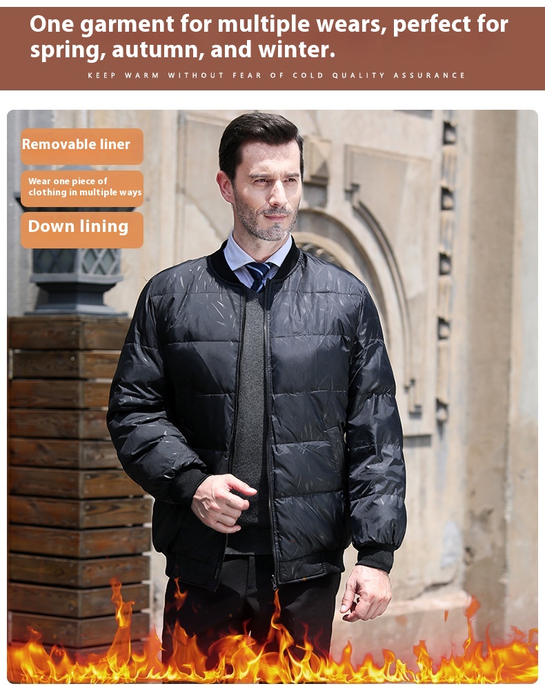 Stay warm and stylish with this men’s mid-length coat featuring a detachable liner for versatile wear. Perfect for winter, it combines comfort, functionality, and modern fashion — ideal for both casual and formal occasions.
