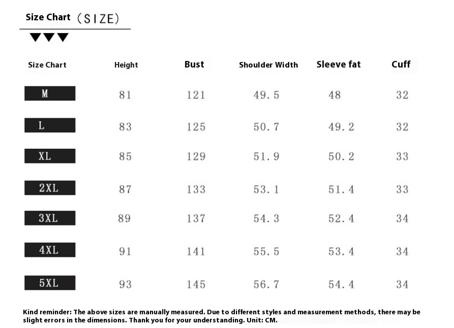 1. Asian sizes are 1 to 2 sizes smaller than European and American people. Choose the larger size if your size between two sizes. Please allow 2-3cm differences due to manual measurement. 2. Please check the size chart carefully before you buy the item, if you don't know how to choose size, please contact our customer service. 3.As you know, the different computers display colors differently, the color of the actual item may vary slightly from the following images.