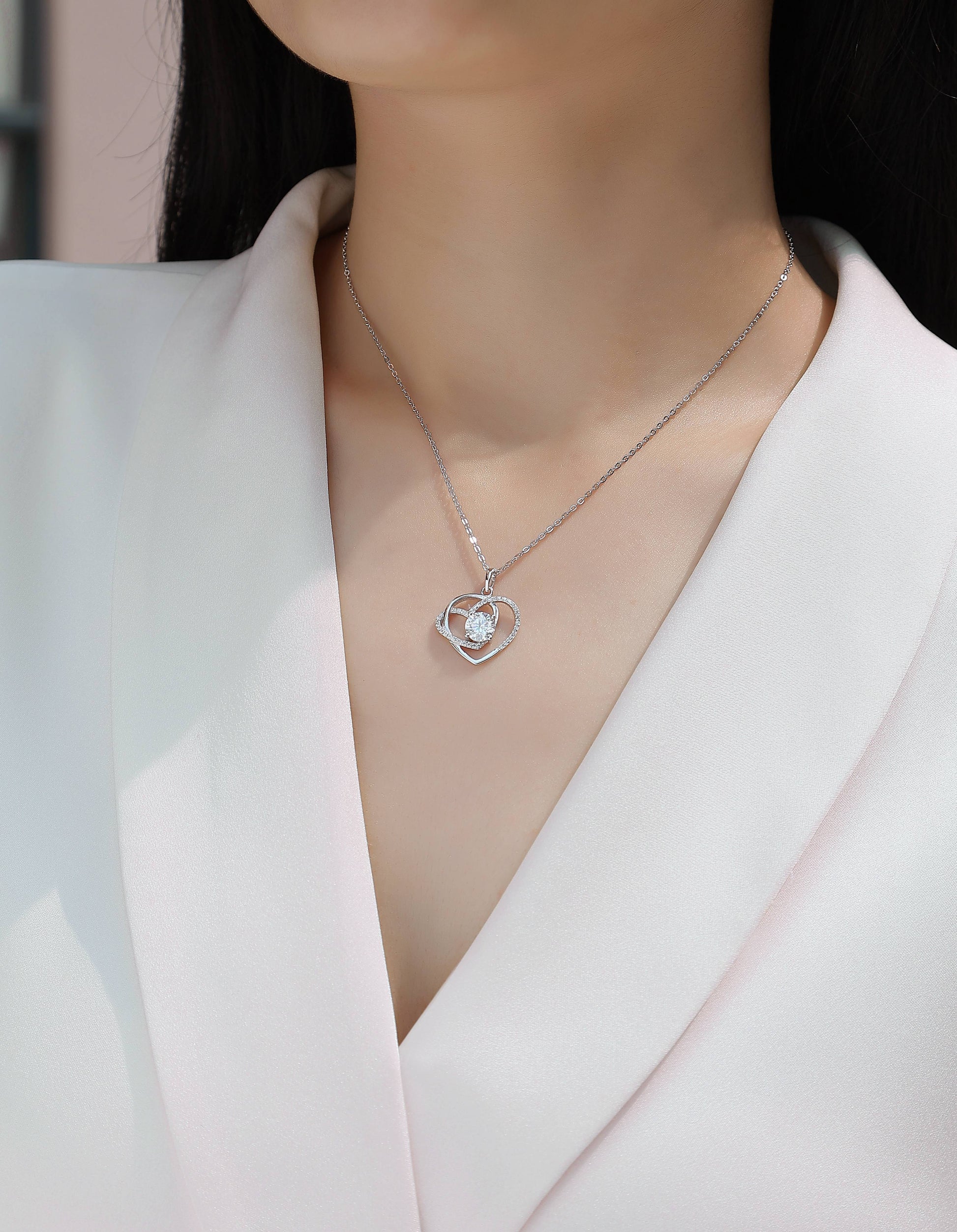 Heart To Heart S925 Silver 1-Carat Moissanite Diamond Pendant
